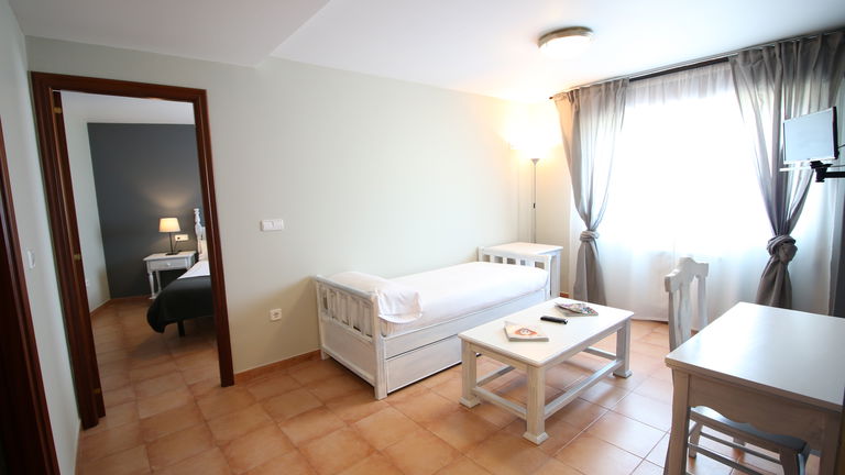 Dispone de un domitorio principal con cama de 150-180 cm, sala de estar con dos camas de 90 cm, armario, escritorio, TV de pantalla plana, baño privado (ducha o bañera), conexión Wi-Fi gratuita, balcón.
