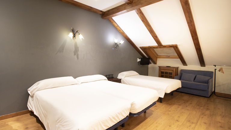 Dispone de una cama de tres camas de 90 cm, armario, escritorio, TV de pantalla plana, baño privado (ducha), conexión Wi-Fi gratuita.