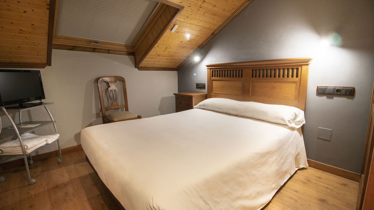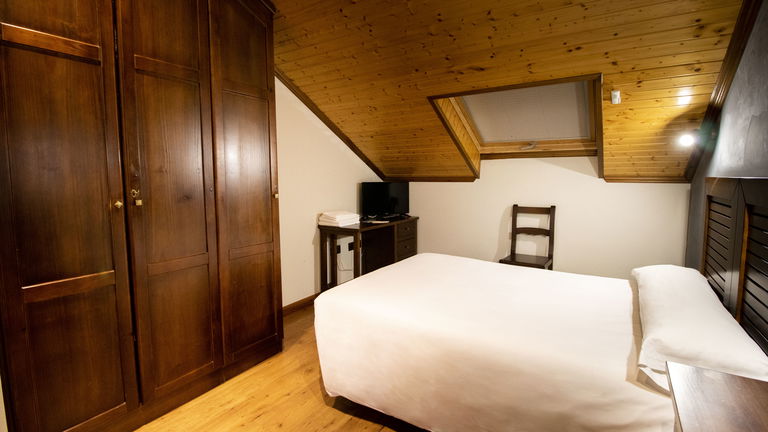 Dispone de una cama de 135 cm, armario, escritorio, TV de pantalla plana, baño privado (ducha), conexión Wi-Fi gratuita, abuhardillada.