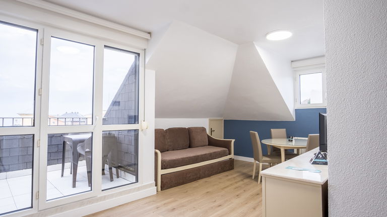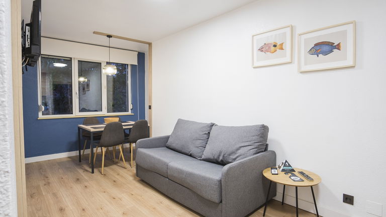 Dispone de un domitorio con dos camas de 105 o 135cm y sofá cama, armario, cocina equipada, salón con TV de pantalla plana, baño completo con Ducha, terraza/balcón, conexión Wi-Fi Gratuita.