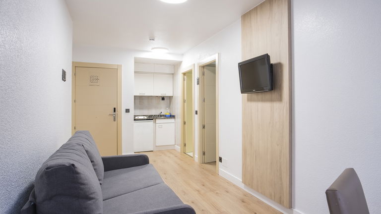 Dispone de un domitorio con dos camas de 105 o una cama de 180 cm y sofá cama, armario, cocina equipada, salón con TV de pantalla plana, baño completo con Ducha, terraza/balcón, conexión Wi-Fi Gratuita.