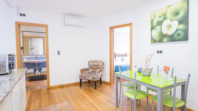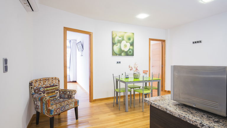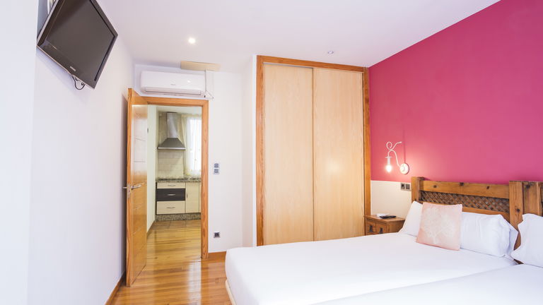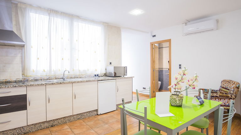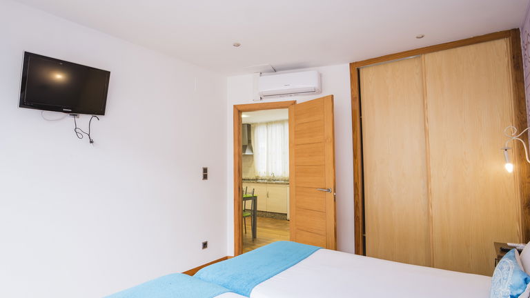 Dispone de una habitación privada con cama de 135 cm, sala de estar con dos camas de 1,05 cm y una cama de 90 cm, armario, cocina equipada, TV de pantalla plana, baño privado (ducha o bañera), conexión Wi-Fi gratuita, abuhardillado.