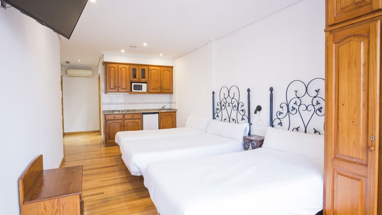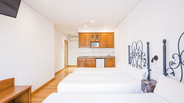 Dispone de dos camas de 90 cm y un sofá cama de 80 cm, cocina equipada, armario, escritorio, TV de pantalla plana, baño privado (ducha o bañera), conexión Wi-Fi gratuita.