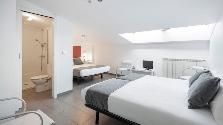Dispone de una cama de 135 cm y dos camas de 90 cm, armario, escritorio, TV de pantalla plana, baño privado, conexión Wi-Fi gratuita.