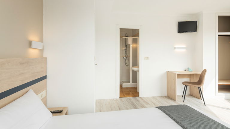 Dispone de una cama de 135 cm o dos camas de 90 cm, armario, escritorio, TV de pantalla plana, baño privado (ducha o bañera), conexión Wi-Fi gratuita.