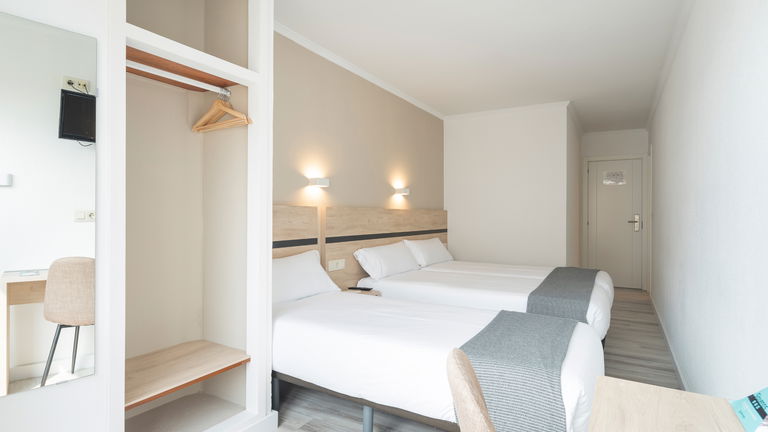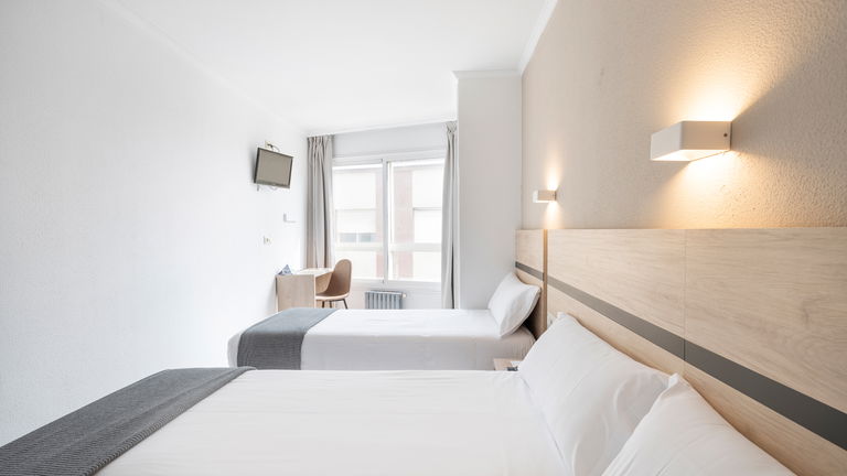 Dispone de una cama de 135 cm y una cama de 90cm o tres camas individuales de 90 cm, armario, escritorio, TV de pantalla plana, baño privado (ducha o bañera), conexión Wi-Fi gratuita.