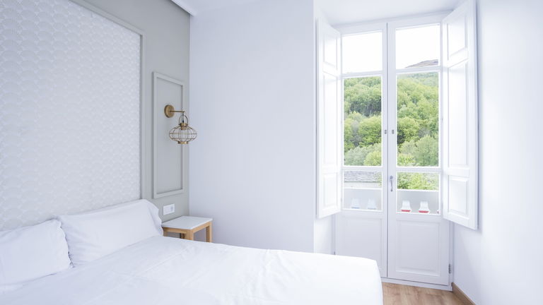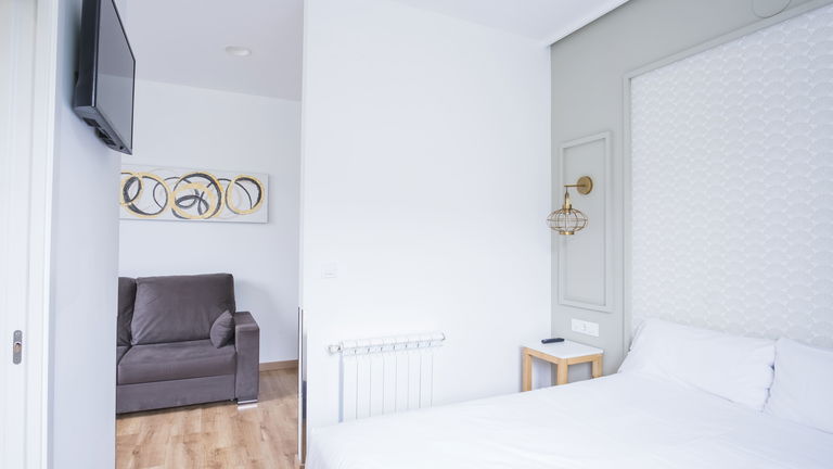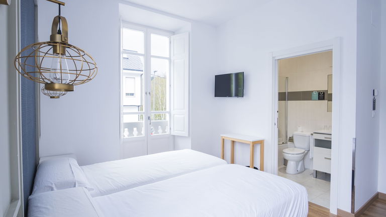 Habitaciones exclusivas, espaciosas, luminosas y diseñadas con un estilo contemporáneo. Disponen de dos camas individuales o una cama de matrimonio más una cama supletoria , y todos los servicios y equipamientos para disfrutar de una estancia inolvidable durante tu Camino a Santiago. Además, ofrecen Wi-Fi gratuito y TV de pantalla plana.