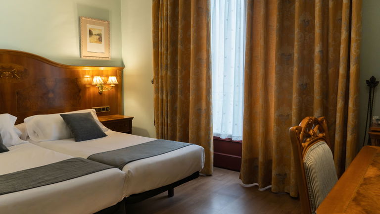 Dispone de una cama de 135 cm o dos camas de 90 cm, armario, escritorio, TV de pantalla plana, baño privado con ducha o bañera, minibar, conexión Wi-Fi gratuita.
