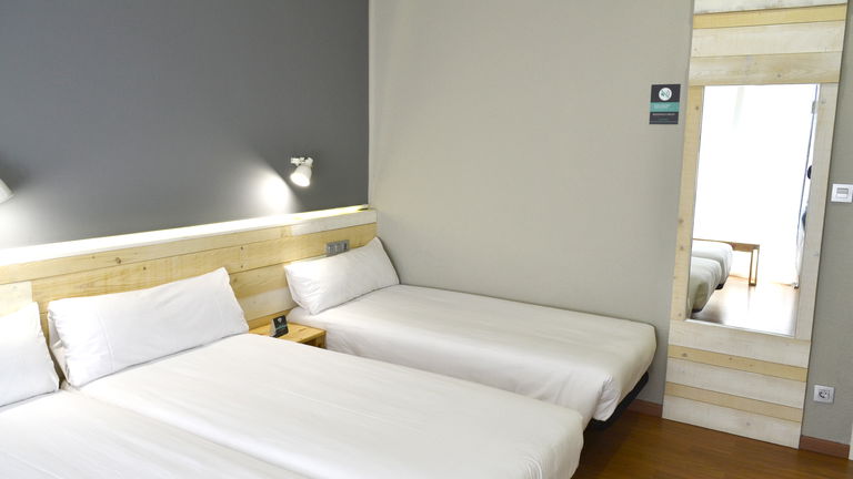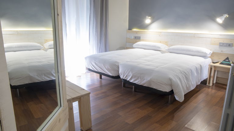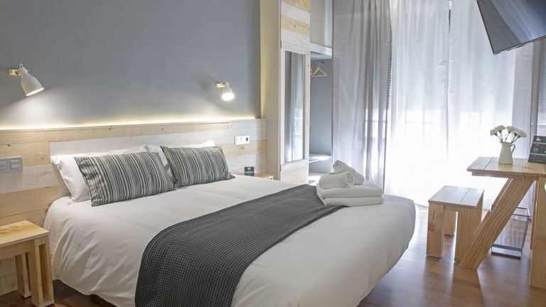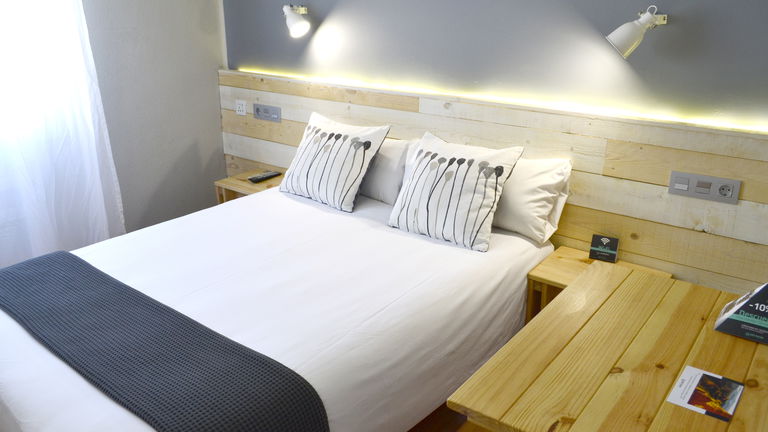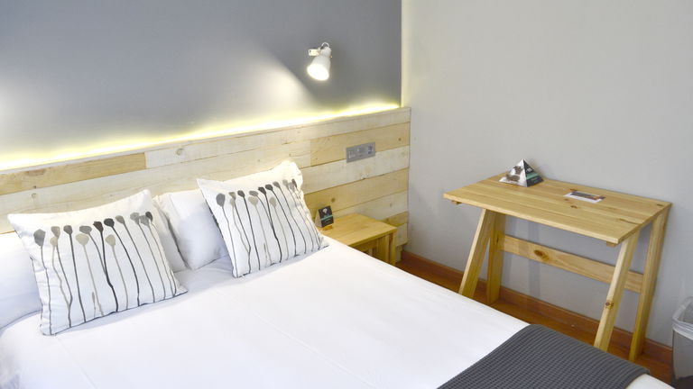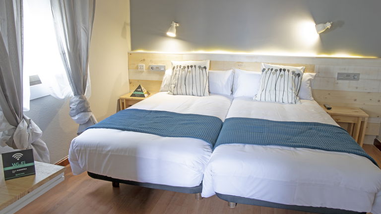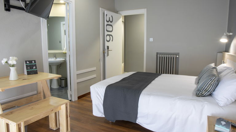 Las habitaciones dobles de nuestro hotel en Ponferrada cuentan con cama de matrimonio de 135 cm o 150 cm, o bien 2 camas de 90 cm. Además, algunas de ellas tienen aire acondicionado.
