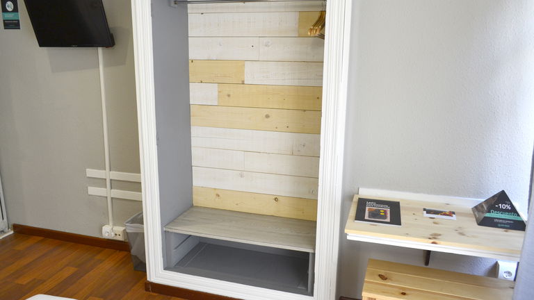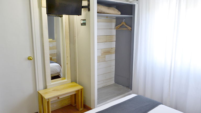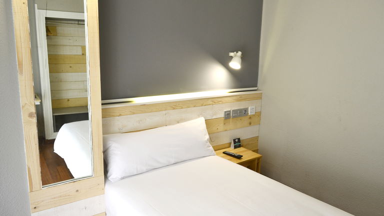 En nuestras cálidas y recientemente renovadas habitaciones individuales, completamente equipadas, dispondrás de servicio de Wi-Fi, televisión, armario, ventilador, calefacción, baño privado y una cama de matrimonio de 105 cm.