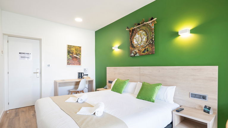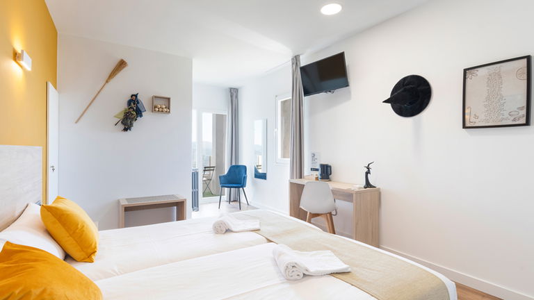 Dispone de una cama de 150 cm o dos camas de 90 cm, armario, escritorio, TV de pantalla plana, baño privado (ducha o bañera), conexión Wi-Fi gratuita.