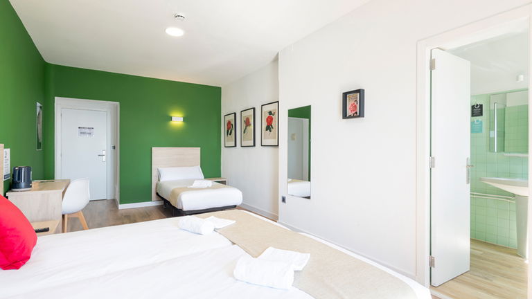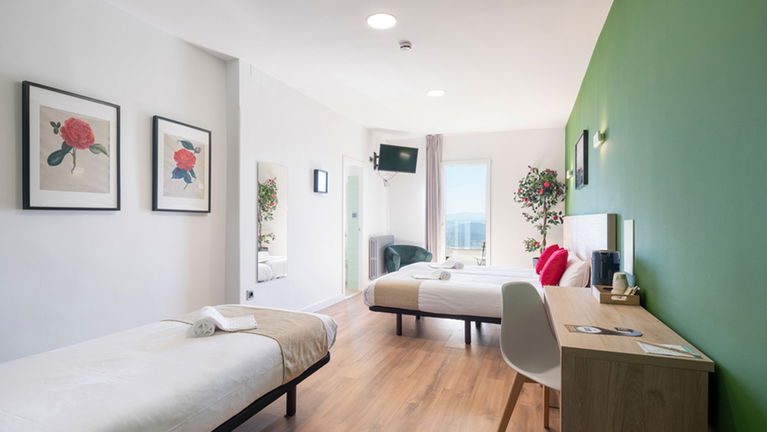 Dispone de tres camas de 90 cm, armario, escritorio, TV de pantalla plana, baño privado (ducha o bañera), conexión Wi-Fi gratuita.