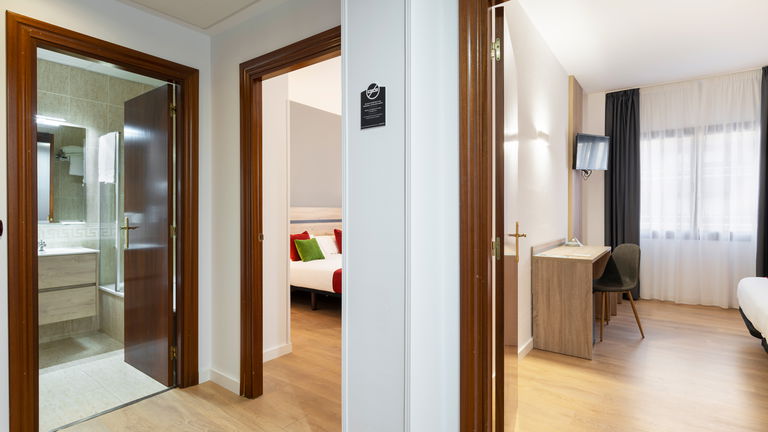 Disponen de una cama de 180 cm y dos camas de 90 cm o cuatro camas de 90 cm (bajo disponibilidad) , armario, escritorio, TV de pantalla plana, baño privado y conexión Wi-Fi gratuita.