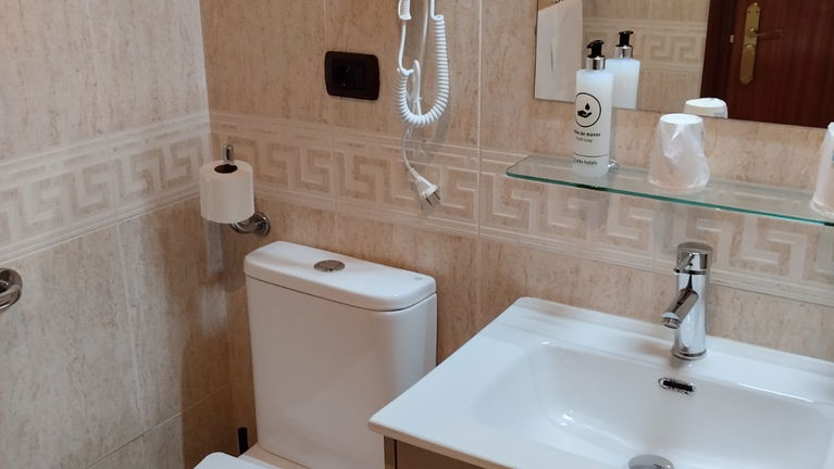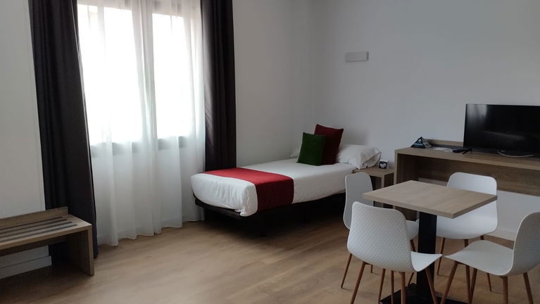 Dispone de cuatro camas de 90 cm y una pequeña zona de cocina con nevera. Además cuenta con armario, TV de pantalla plana, baño privado y conexión Wi-Fi gratuita.