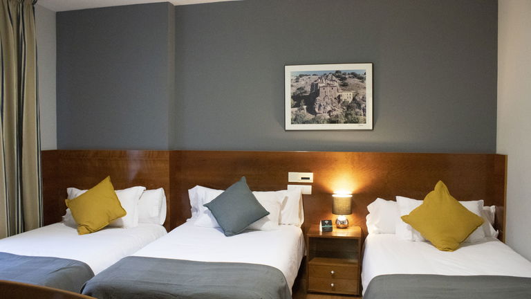 Dispone de tres camas de 105 cm, armario, escritorio, TV de pantalla plana, baño privado con bañera, conexión Wi-Fi gratuita y aire acondicionado.