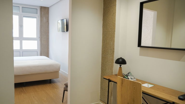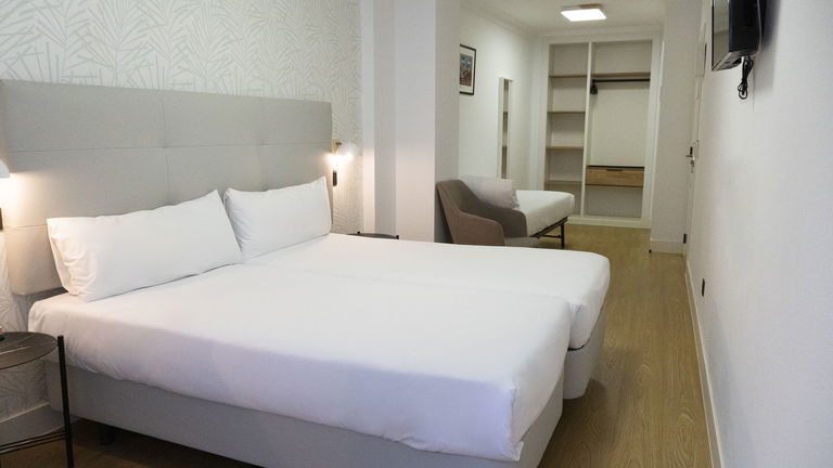 Dispone de una cama de 135 cm o dos camas de 90 cm, armario, escritorio, TV de pantalla plana, baño privado (ducha o bañera), conexión Wi-Fi gratuita.