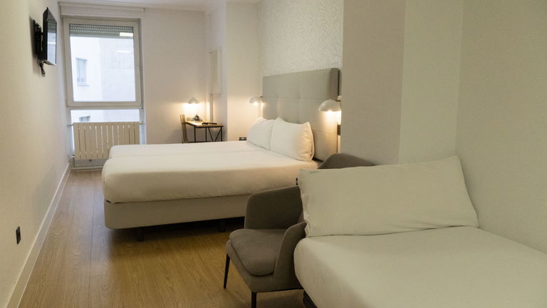 Dispone de tres camas de 90 cm, armario, escritorio, TV de pantalla plana, baño privado (ducha o bañera), conexión Wi-Fi gratuita.