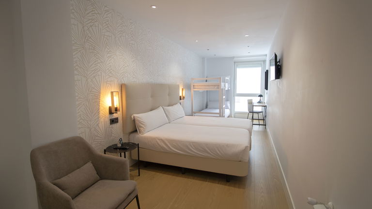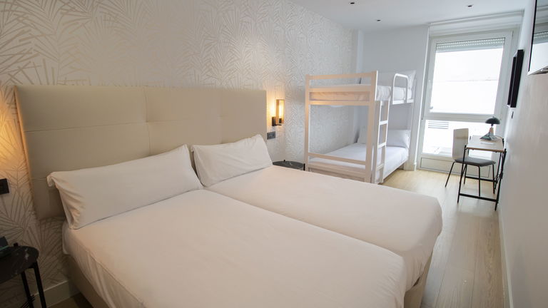 Dispone de dos camas de 90 cm y una litera de dos camas, armario, escritorio, TV de pantalla plana, baño privado (ducha o bañera), conexión Wi-Fi gratuita.