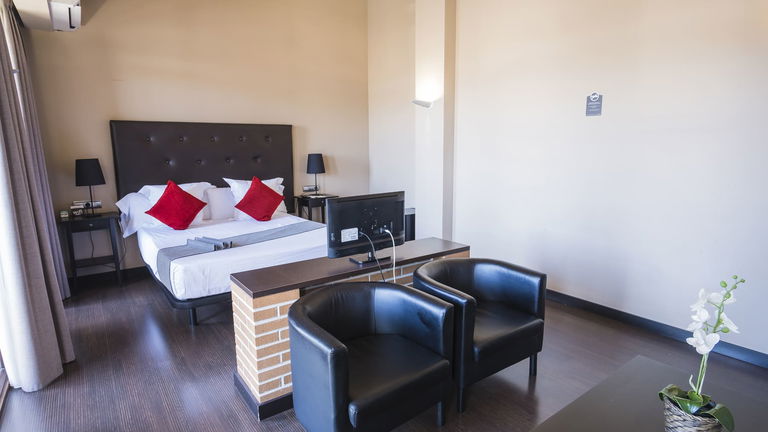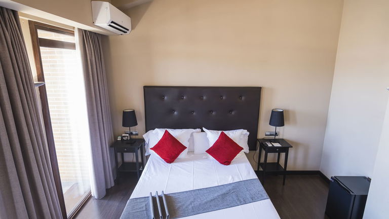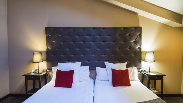Habitación con cama de matrimonio de 150 cm o bien 2 camas de 90 cm. Disponen de armario, escritorio, TV de pantalla plana, baño privado y conexión Wi-Fi gratuita.