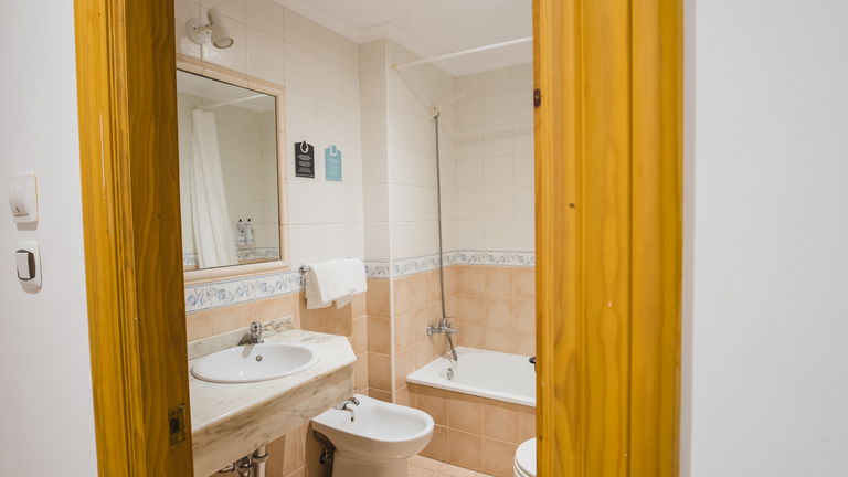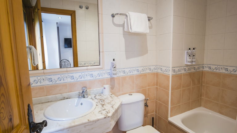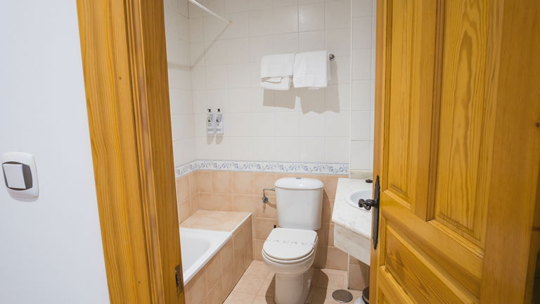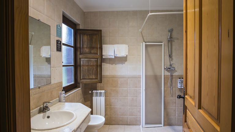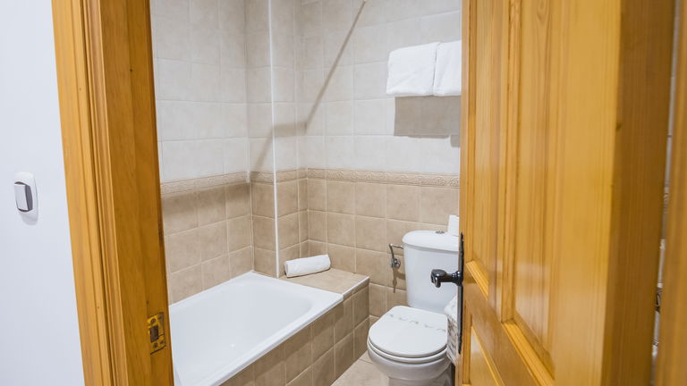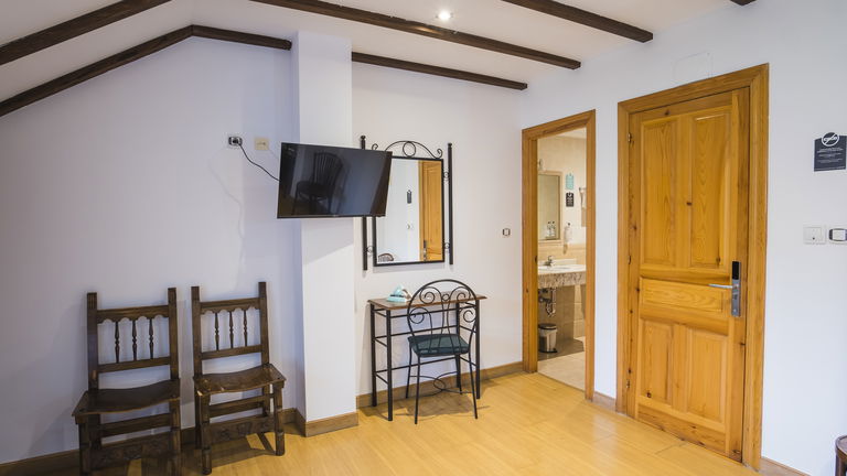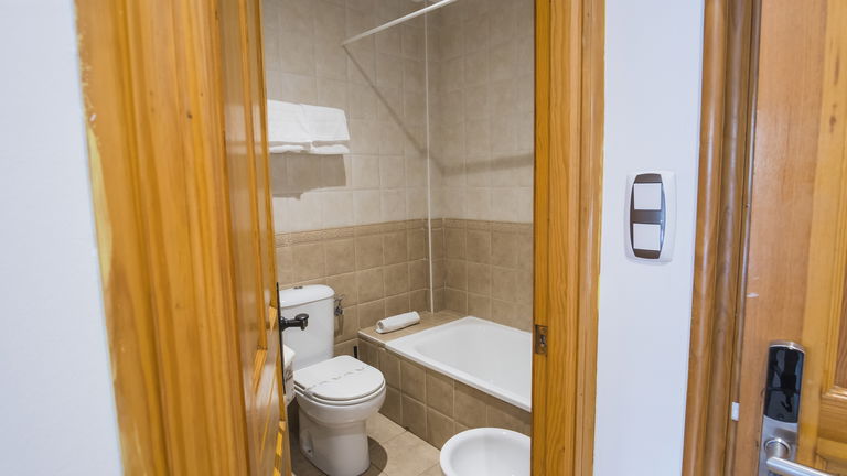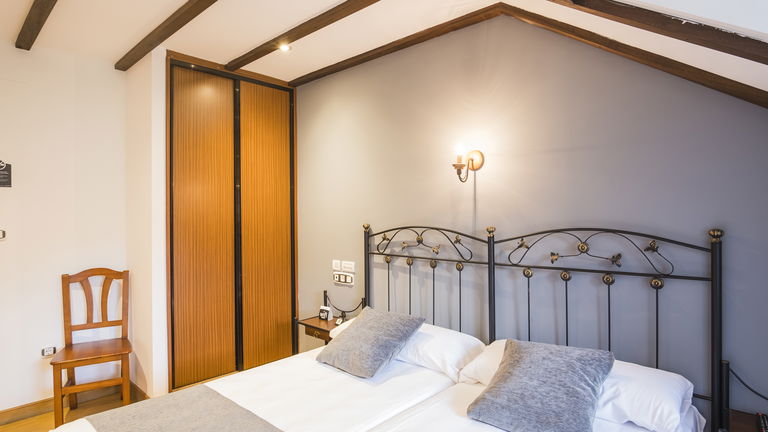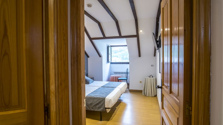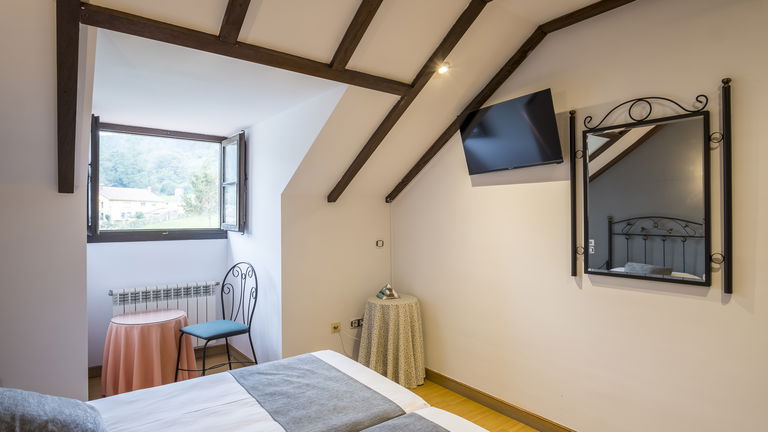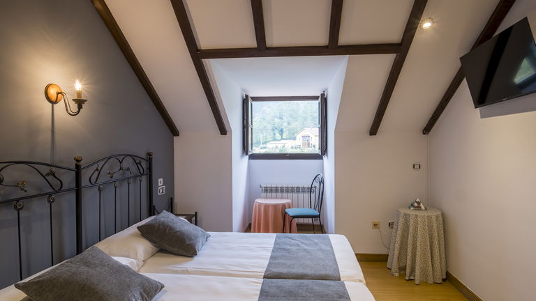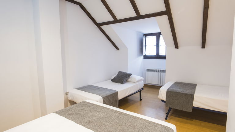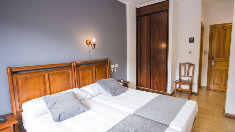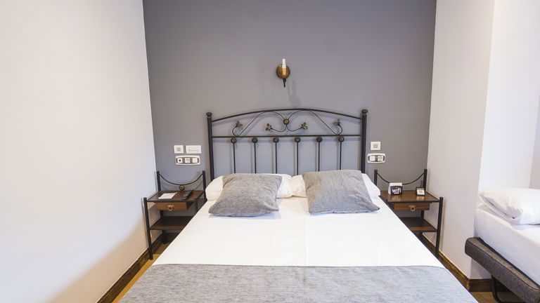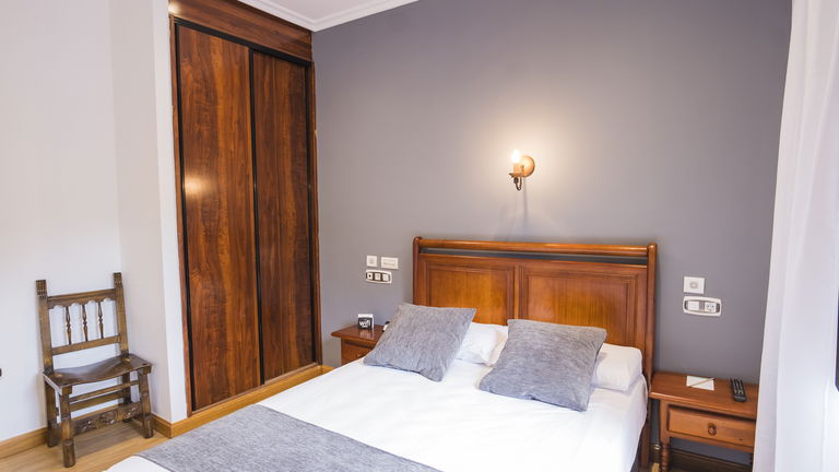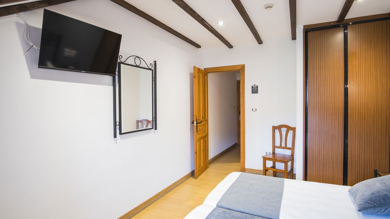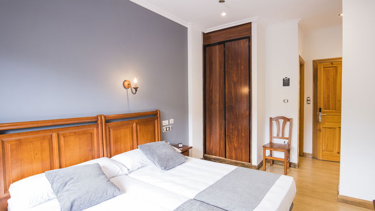 Dispone de una cama doble de 150 cm y dos camas individuales de 90 cm o cuatro camas individuales de 90 cm, armario, escritorio, TV de pantalla plana, baño privado con bañera, conexión Wi-Fi gratuita.