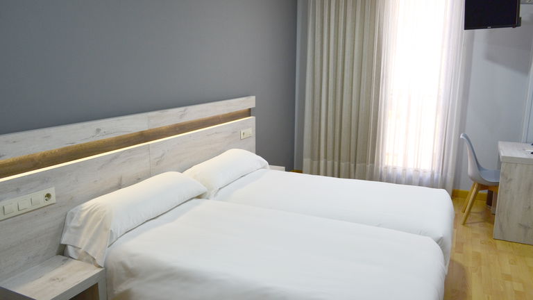 Dispone de dos camas de 90 cm, armario, escritorio, TV de pantalla plana, baño privado (ducha o bañera), cconexión Wi-Fi gratuita.