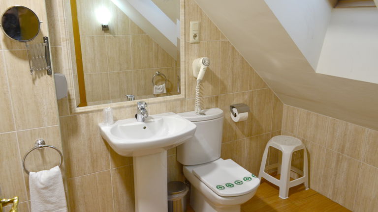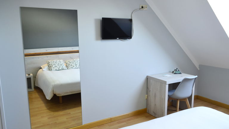 Dispone de una cama de 150, abuhardillada, armario, escritorio, TV de pantalla plana, baño privado (ducha o bañera), cconexión Wi-Fi gratuita.
