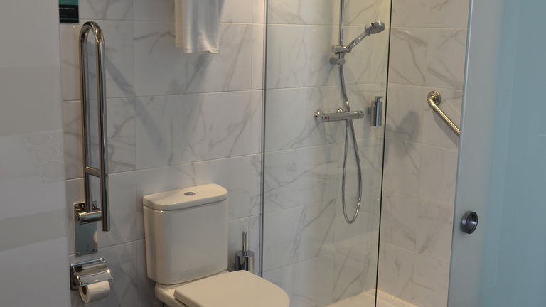 Dispone de una cama doble de 150 - 180 cm, armario, escritorio, TV de pantalla plana, baño privado (ducha), conexión Wi-Fi gratuita, terraza privada con mesas y sillas.