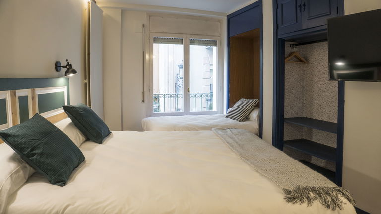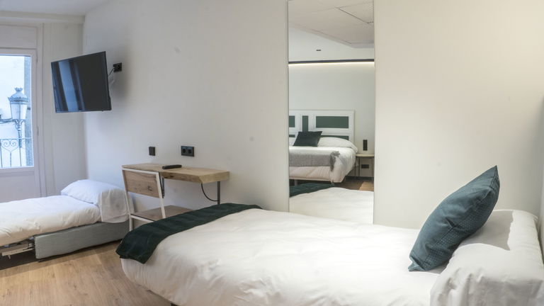 Habitación con tres camas individuales de 90 cm o cama doble de 150 cm y cama de 90 cm. Disponen de armario, escritorio, TV de pantalla plana, baño privado con bañera y conexión Wi-Fi gratuita.
