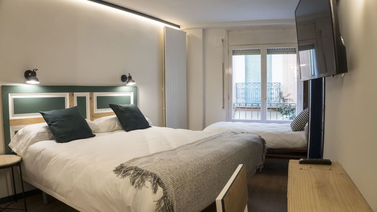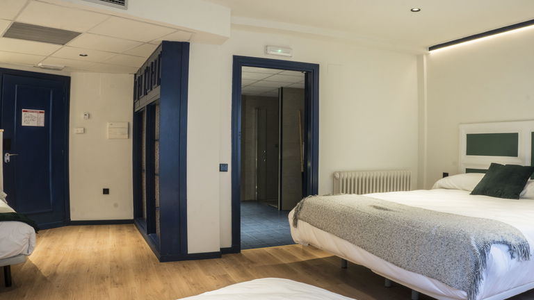 Nuestras habitaciones familiares cuentan con una cama de 180 cm, una cama de 90 cm y un sofá cama. Están totalmente equipadas con armario, escritorio, TV de pantalla plana, baño privado con ducha y conexión Wi-Fi gratuita.