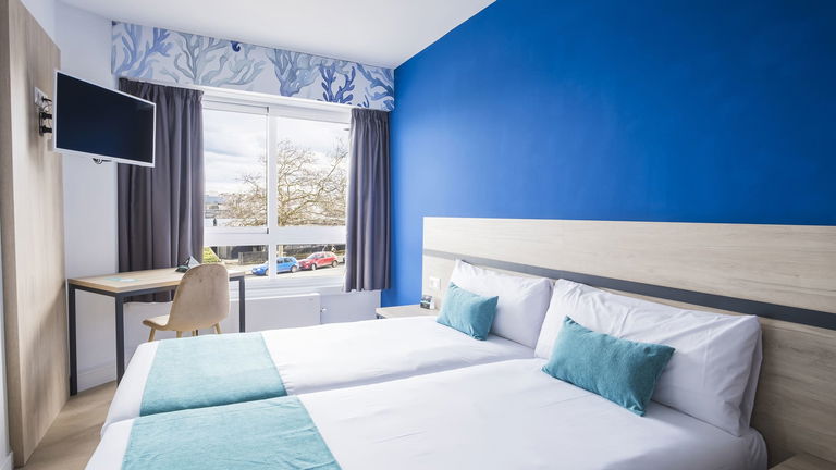 Dispone de dos camas de 90 cm o una cama doble, armario, escritorio, TV de pantalla plana, baño privado con bañera, conexión Wi-Fi gratuita.