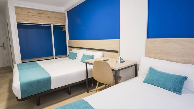 Dispone de dos camas de tres camas de 90 cm, armario, escritorio, TV de pantalla plana, baño privado con bañera, conexión Wi-Fi gratuita.