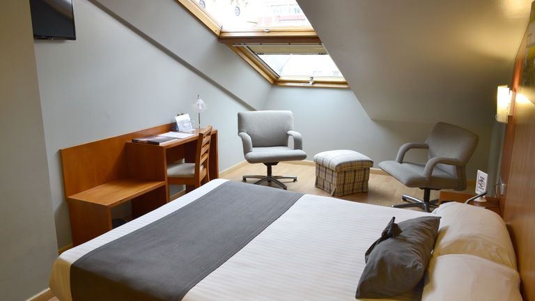 Dispone de una cama de 135 cm o dos camas de 90 cm, armario, escritorio, TV de pantalla plana, baño privado (ducha o bañera), conexión Wi-Fi gratuita.