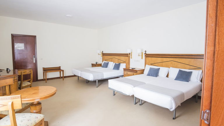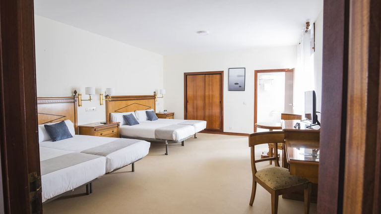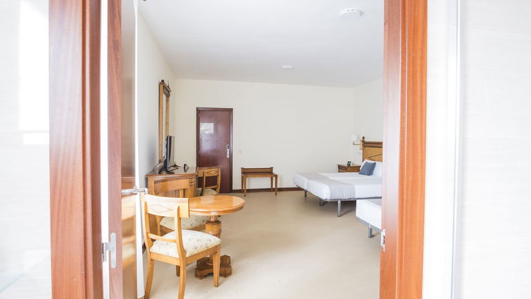 Dispone de cuatro camas de 90 cm, armario, escritorio, TV de pantalla plana, conexión Wi-Fi gratuita,microondas, airfryer, cafetera francesa, platos, cubiertos, tazas, vasos y nevera
