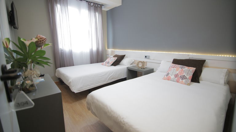 Dispone de una cama de 135 cm y una cama de 90 cm o tres camas de 90 cm, armario, escritorio, TV de pantalla plana, baño privado (ducha o bañera), conexión Wi-Fi gratuita.