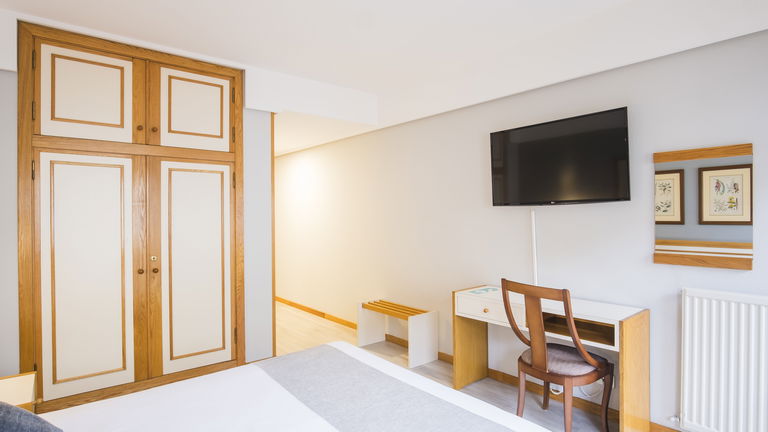 Dispone de una cama de 150cm o dos camas de 105 cm, armario, escritorio, TV de pantalla plana, baño privado, conexión Wi-Fi gratuita.
