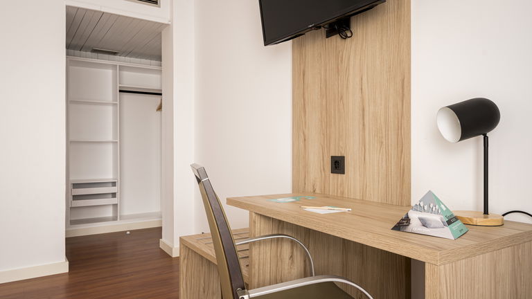 Dispone de una cama de 180 cm o dos camas 90 cm (dependiendo de disponiblidad), armario, escritorio, TV de pantalla plana, baño privado (ducha), conexión Wi-Fi gratuita.