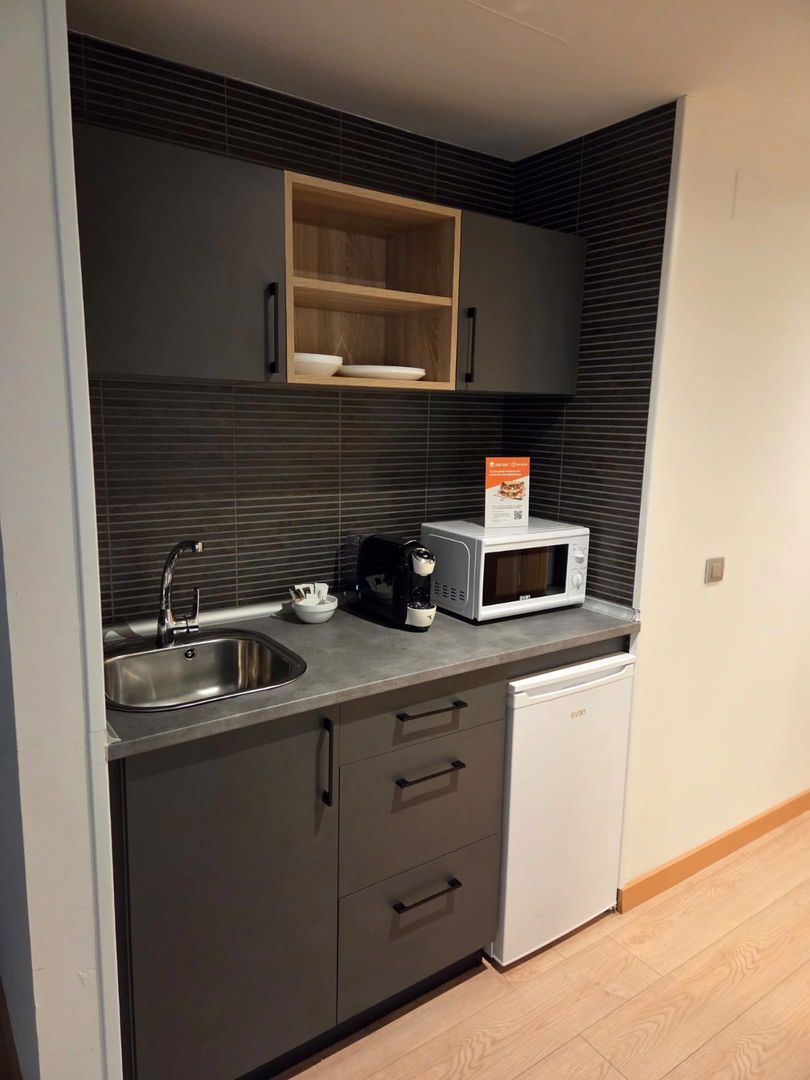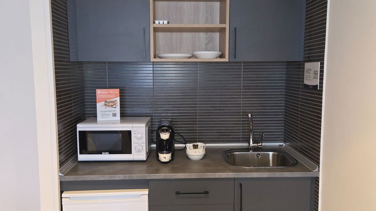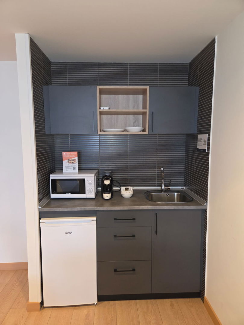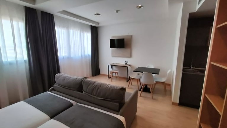 Dispone de una cama de 150 cm o dos camas de 90 cm y sofá cama para una persona, armario, zona de cocina con neverita, fregadero, microondas y cafetera, salón con TV de pantalla plana, baño privado con ducha, conexión Wi-Fi gratuita.