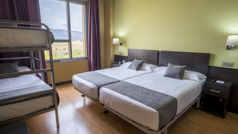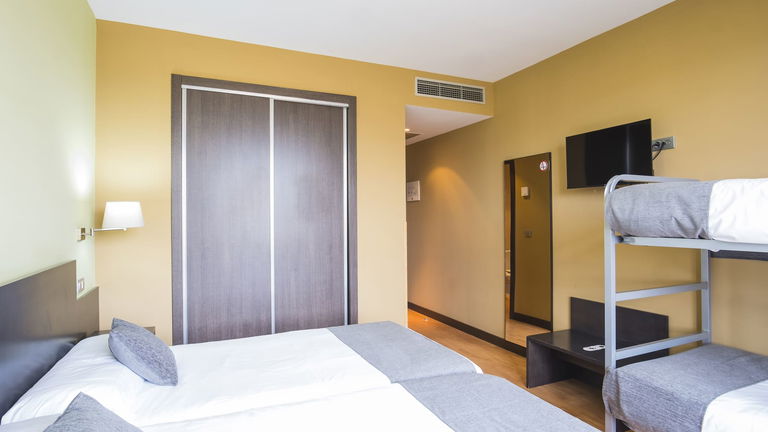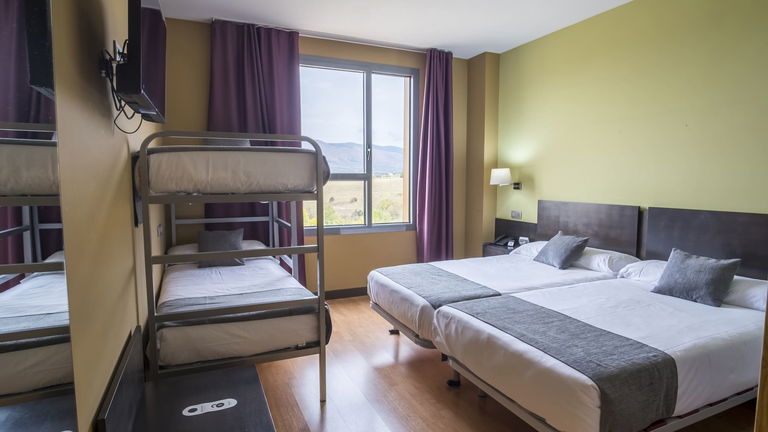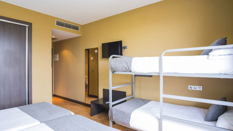 Dispone de dos camas de 105 cm y una litera de 2 camas de 90 cm, armario, escritorio, TV de pantalla plana, baño privado, aire acondicionado, conexión Wi-Fi gratuita.