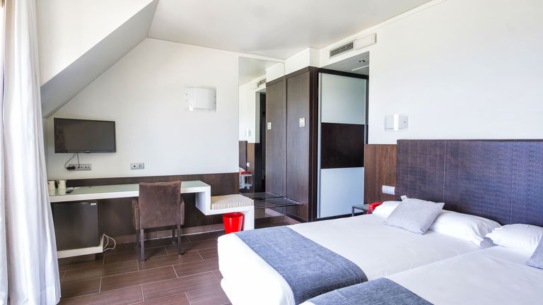 Dispone de dos camas de 105 cm, armario, escritorio, TV de pantalla plana, baño privado con ducha, conexión Wi-Fi gratuita.