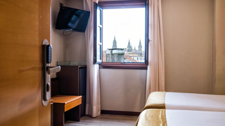 Dispone de dos camas de 105 cm, armario, escritorio, TV de pantalla plana, baño privado (ducha o bañera), conexión Wi-Fi gratuita, exterior.