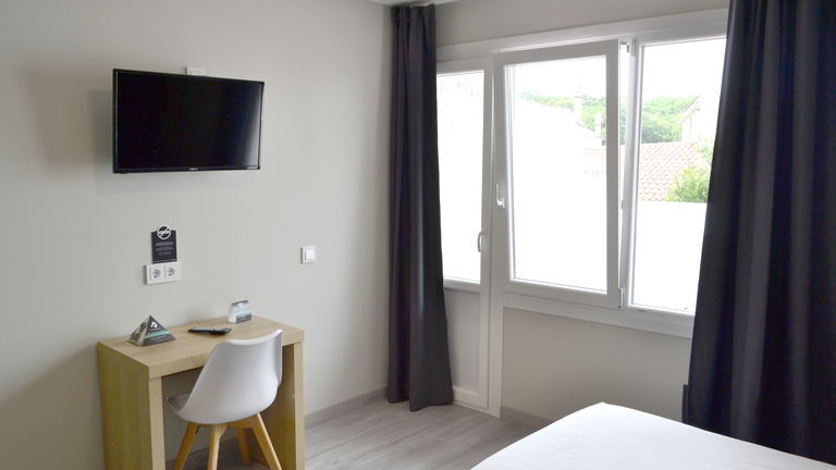 Dispone de dos camas de 90 cm, armario, escritorio, TV de pantalla plana, baño privado (ducha), conexión Wi-Fi gratuita, terraza.