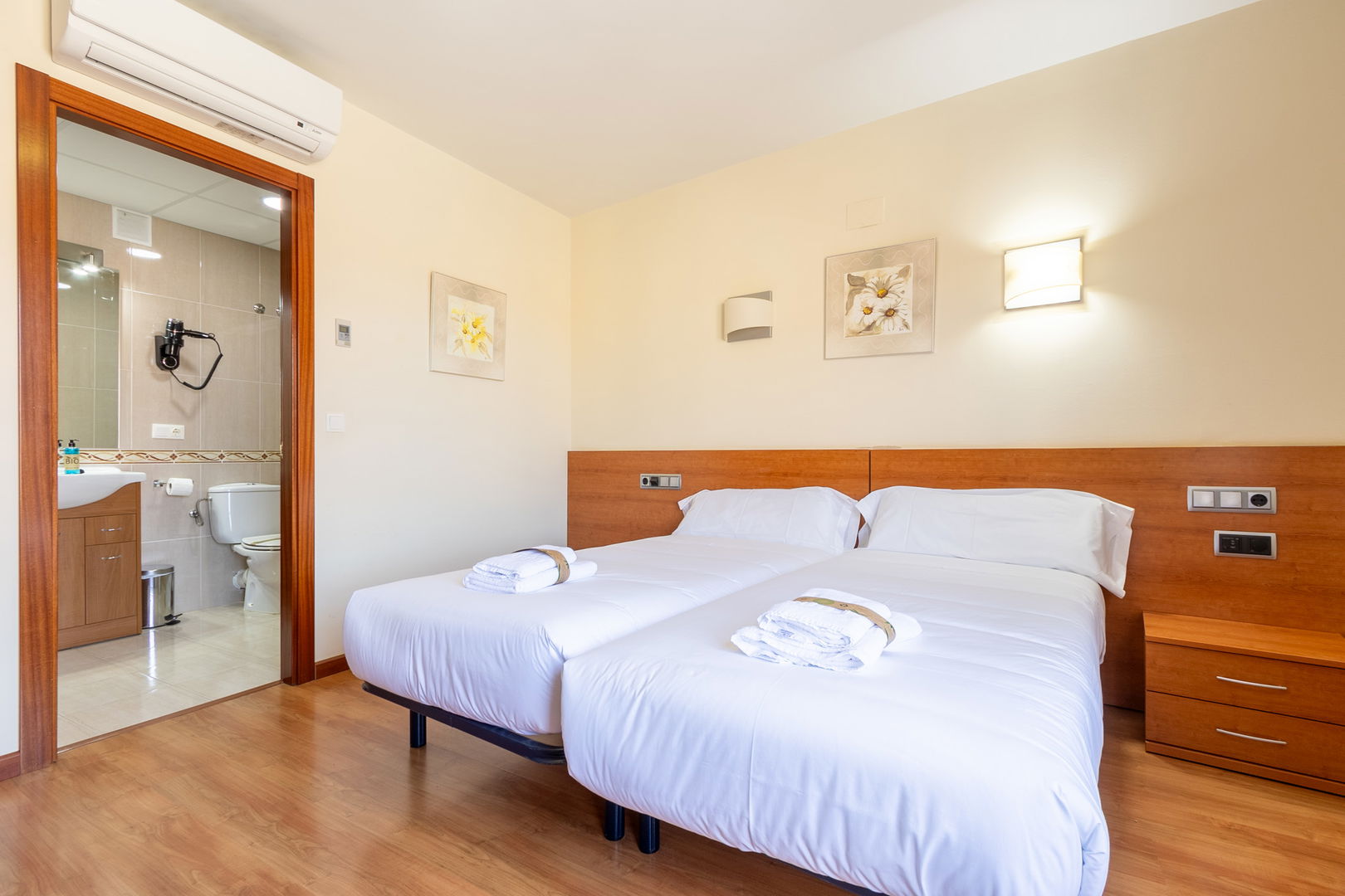 Dispone de dos camas de 90 cm, armario, escritorio, TV de pantalla plana, baño privado, aire acondicionado, conexión Wi-Fi gratuita.
