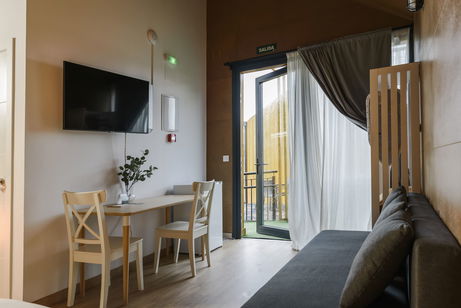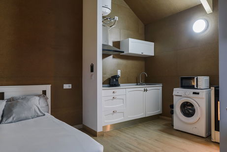 Dispone de una cama de 150 cm, armario, escritorio, TV de pantalla plana, baño privado, cocina completa, conexión Wi-Fi gratuita.