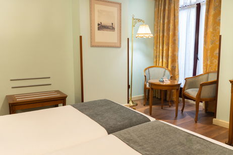 Dispone de una cama de 135 cm o dos camas de 90 cm, armario, escritorio, TV de pantalla plana, baño privado con ducha o bañera, minibar, conexión Wi-Fi gratuita.