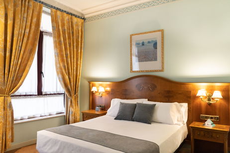 Dispone de una cama doble de 160 cm y una cama individual de 90 cm, armario, escritorio, TV de pantalla plana, baño privado con bañera, minibar, conexión Wi-Fi gratuita.