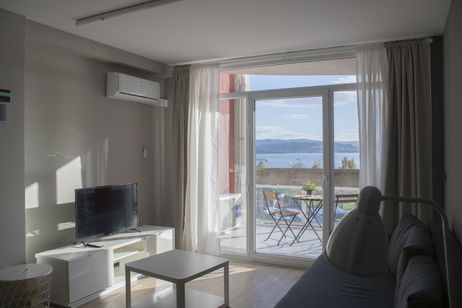 Apartamento dúplex que dispone de salón con sofá-cama y TV de pantalla plana, dos dormitorio con cama de 150 cm y dos camas de 90 cm, armario, cocina equipada, baño completo (bañera o ducha), terraza con vistas al mar, conexión Wi-Fi gratuita.
