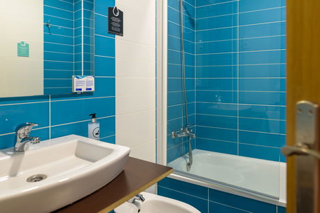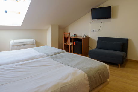 Dispone de dos camas individuales de 1.05 cm y una supletoria, armario, escritorio, TV de pantalla plana, baño privado con bañera, conexión Wi-Fi gratuita.