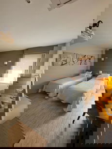 Dispone de dos camas de 90 cm, armario, escritorio, TV de pantalla plana, baño privado, aire acondicionado, terraza con vistas a la montaña, conexión Wi-Fi gratuita.